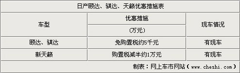 车友购车时税款往往是能影响选择车型的一个重要因素,但小编今天从东风日产东北汽贸专营店了解到,现购颐达、骐达可享受免购置税的优惠,购天籁享受购置税减半的优惠。