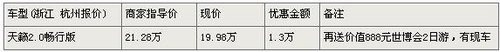 天籁2.0畅行版现金优惠1.3万 再送价值888元世博会2日游