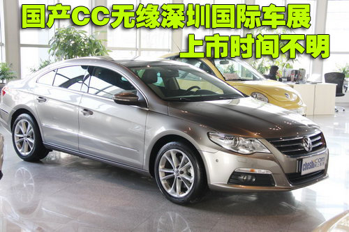 【网上车市】在本次深港澳国际车展上,一汽大众展厅最闪耀的莫过于国产CC,但今日网上车市记者从深圳地区经销商处获悉,一汽大众CC将不会现身本次国际车展,相信令不少车迷遗憾!预计售价约30万的国产CC,原本预计今年7月上市,现上市时间也变的不明朗,但是深圳一汽大众4S店已经接受预定,定金1万。