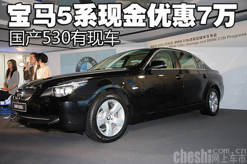 据上海宝马4S店销售人员介绍目前宝马5系系列轿车最高降价7万,其中国产530系列有现车,颜色齐全。