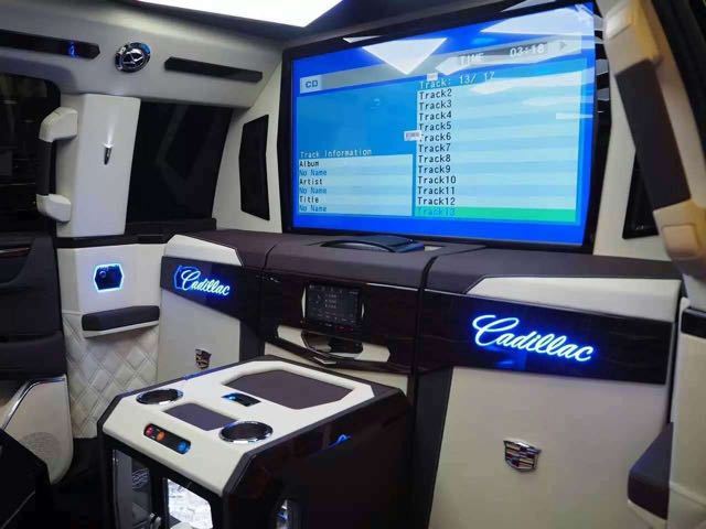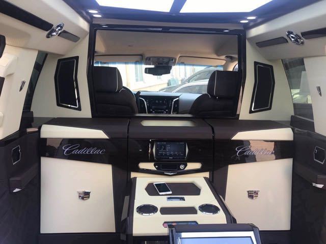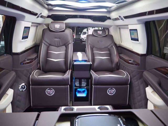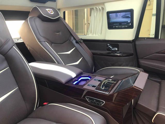 凯迪拉克总统一号美规整个后舱为四座设计,四座椅头枕处均印有凯迪拉克标识。主座椅中央扶手处还设有控制台,让您置身舒适的座椅不必起身就可操控车内设备,相当人性化。