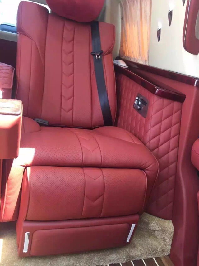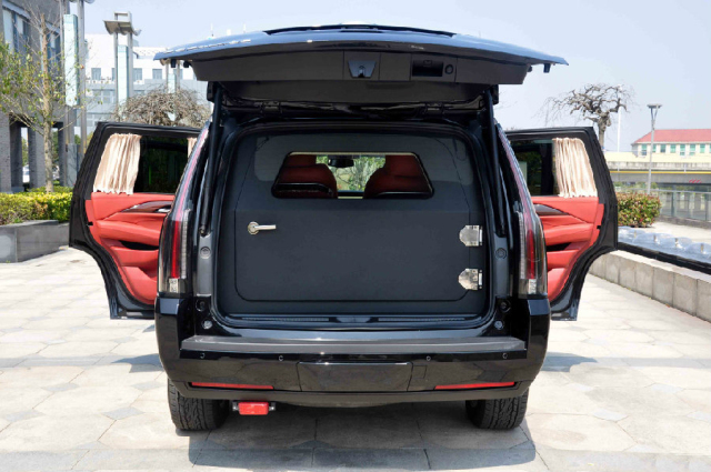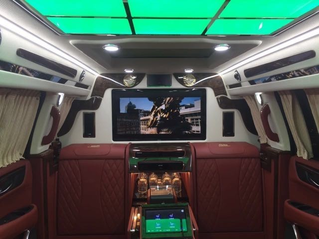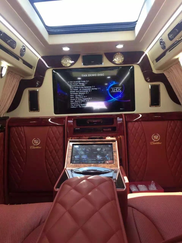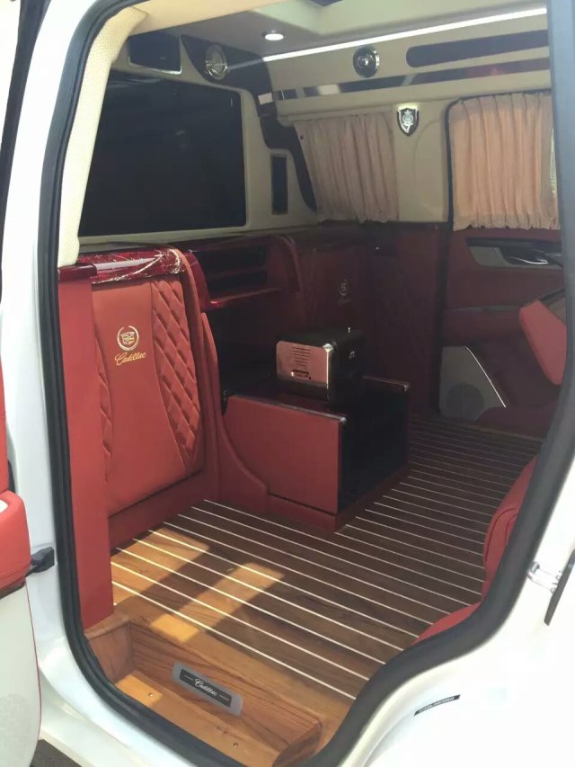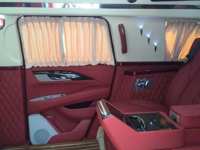 作为一款豪华商务车型,凯迪拉克总统一号的驾驶舱和乘坐舱中间设有电动私密升降隔屏,有效的将整车分为两个独立的私密空间。驾驶舱操控区域借鉴了凯迪拉克商务车型的设计手笔,大气雅致,方向盘也运用了四幅式样,由皮质和木质材质双层包裹而成。购车电话:15122147711曹义同微信3d4e4860a05d7e46.jpg
