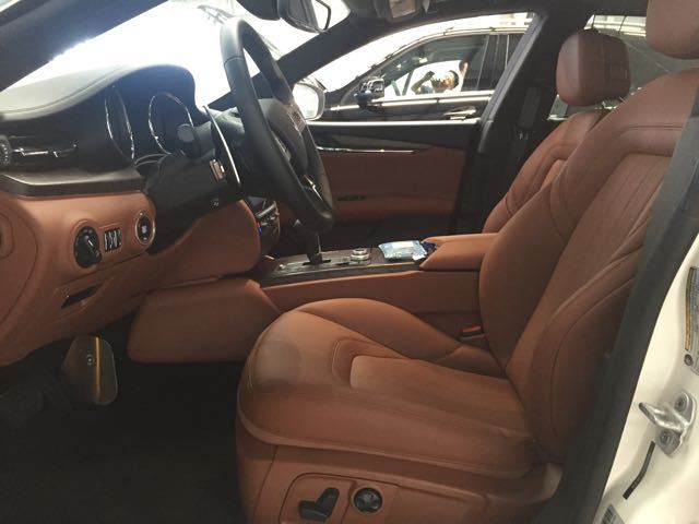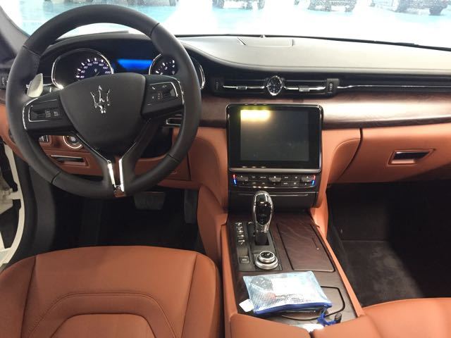 17款玛莎拉蒂总裁外观上四驱车型并未做出改变,玛莎拉蒂也是一个在设计上比较怀旧的品牌,前突的发动机进气口和C柱处的品牌标识甚至还带着1963年第一代车型的神韵。要说唯一的区别那就是四驱车型增加了一个Q4的尾标,仅仅为了起到提醒车主在雨雪天出门别开错车的功能。配置:17款美规总裁SQ4 白/棕,20轮 红色卡钳 换挡拨片。