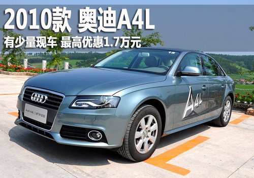 据奥迪销售人员介绍:目前店内2010款奥迪A4L有少量现车,现车颜色不全,部分颜色需提前预订。其中,入门车型1.8TFSI舒适型优惠5千元,优惠后仅售28.6万元;2.0TFSI运动型降幅最高,达到了1.7万元。近期想购买奥迪A4L的朋友,不妨致电经销商以便获取更多详情。