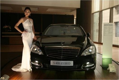 来宾聚集在梅赛德斯-奔驰S 400 HYBRID展台欣赏展车
