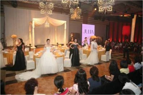 图为婚纱品牌Julia婚纱礼服秀(上图左及图右)及上海滩礼服秀