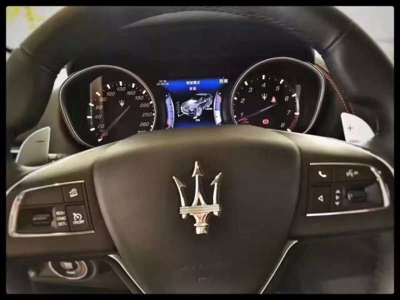 17款玛莎拉蒂Levante的内饰设计将运动与豪华做出了很好的结合,三辐式方向盘设计的动感十足,且运用了适当的镀铬装饰。17款玛莎拉蒂Levante仪表盘上与中控台的两块电子屏幕很好的提升了车内的豪华感与科技感
