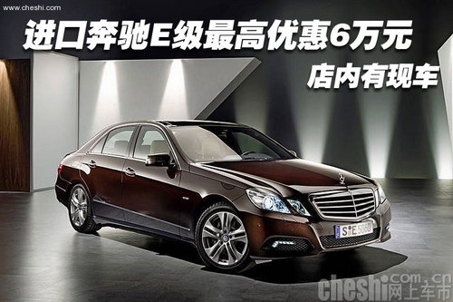 奔驰E级外观时尚、内饰豪华、极富贵族气质。同时该车型在外观设计以及内饰的豪华氛围方面,和同价位车型相比优势非常突出,在动力性和操控方面表现也比较均衡。近日编者从奔驰经销商处获悉,进口奔驰E级全系最高优惠6万元,店内有部分现车,颜色为黑色和银色居多,对这款感兴趣的朋友可咨询经销商。