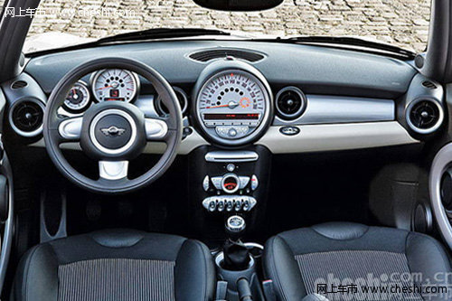 坐进驾驶座椅,一个醒目的白色圆形大表盘十分惹眼,位于仪表板的中央位置,可电子显示车速、油量、冷却剂以及其他功能状态等信息。这种布局自从1968年以来一直是MINI典型特征。在这个概念下,新MINI的控制健和舒适功能旋钮环绕四周,车内的各种功能和显示都用一种令人舒适的橙色灯光显现,控制台下方带有6个条形小开关是从原创MINI继承而来的,这些开关均为弹簧式按钮,使用后自动弹回原来状态。