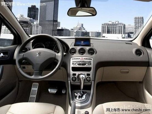 标致408的内饰采用了比较倾向家居风格的双色内饰,标致408的全银色中控布局与之前307有着一脉相承的统一,中控台整体的布局简单,分区合理,三组圆形出风口和整体中控结合得恰到好处。中控台大量的镀铬装饰条让车的内饰更加精致,仪表盘上双桶形的仪表,在深浅两色的内饰色彩搭配下,有黑色和白色两种可选择。
