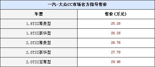 此次一汽-大众共公布了CC不同排量的5款车型,全系搭载了TSI涡轮增压缸内直喷发动机和DSG双离合自动变速器黄金动力组合,配备了智能驾驶辅助系统、丹拿音响、高级棕色真皮内饰等顶级豪华配置,全面刷新了国产高级轿车的标准。其中: