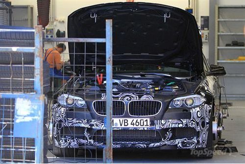 全新一代宝马M5在海外已经经过了多次路试,近期有一张该车的测试谍照被捕捉到,新车的伪装与前几次并无很大区别,前脸保险杠依旧是被重点?;さ牟糠帧5潜冉闲以说氖谴舜涡翸5的发动机盖被打开,我们也有幸第一次目睹这款换代新车的发动机部分。