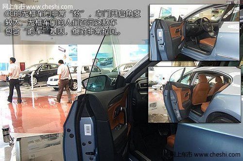 CC的无框车门非常“炫”,车门开启角度较大,无框车门向人们召示这款车包含“跑车”基因,绝对非常拉风。