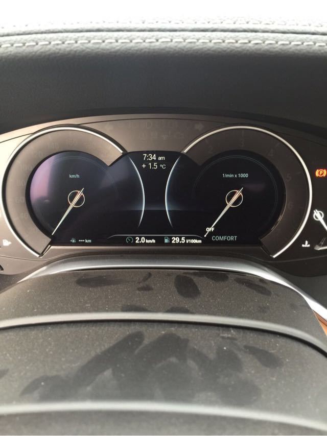 17款中东版宝马730拥有一副粗壮的三幅方向盘,握感不错,同时上面集成了诸如定速巡航、车速限速报警、音响模式选择、音量以及蓝牙电话等按键。宝马730i采用了新的内饰风格,年轻化的运动方向盘,漂亮的液晶仪表以及分层中控台设计都说明7系在努力像时尚迈进。