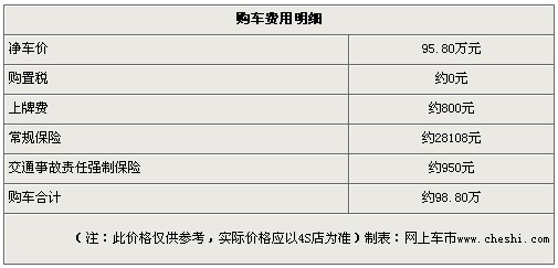以A8L 3.0FSI豪华型为例,第一年新车保险费用大约为28108元,购置税约81880元,减去购置税后全包价费用约98.80万元。具体费用见下表:
