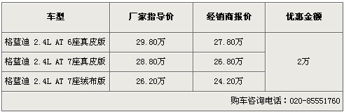 近日,笔者从广州地区进口三菱经销商处了解到,目前三菱格蓝迪有2万元的现金优惠,店内有少量现车在售,喜欢这款车型的消费者可抓紧时机出手。欲了解更多优惠,请致电020-85551760查询。