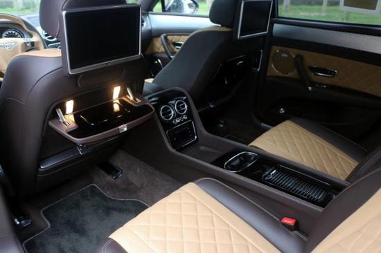 17款宾利飞驰V8S真皮座椅的椅背及坐垫采用了大量菱形打孔处理,视觉效果很漂亮。皮质柔软,座椅填充物软硬适中,电动调节、三组记忆、加热通风以及按摩等功能一应俱全,无可挑剔。飞驰为后排乘客提供了一套名为TSR的控制器,能对后排空调、遮阳帘、娱乐系统等进行控制,这套触控设备整体用户体验还算不错。