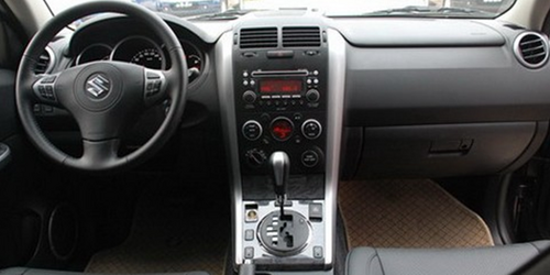 在内部的设计风格上,最为吸引人的是大口径三联筒式仪表盘,自发光式仪表板边缘部分增加了银色装饰。内饰以黑色为主色调,配上雾银色装饰板,新一代维特拉没有了粗犷的气息,加入了桃木的装饰来提高档次。 无论从功能上还是从用料上都不会输给市面上任何一款轻型SUV.半自动空调、支持MP3功能的6碟式CD音响系统、中央多功能液晶显示屏是两款车都具备的,此外5门版还拥有真皮座椅和方向盘音响控制及定速巡航功能。