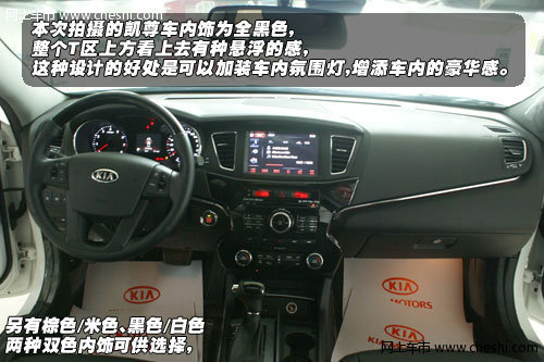 另外据店内销售人员介绍,凯尊丰富的配置是一大亮点,比如可加热的方向盘、电动调节带电加热的真皮座椅、智能钥匙、无钥匙启动、车道偏离警示系统、中央大尺寸GPS/DVD显示屏、可显示倒车影像的内后视镜、车顶大尺寸氛围灯、定速巡航、自动大灯以及大灯清洗等等。