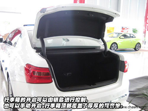 在车身尾部的设计上,凯尊没有什么特别突出的地方。行李箱的开启可以由钥匙进行控制,也可以手动开启。行李箱顶部覆盖了厚厚的隔音棉。在车牌上方的位置,可以清晰的看见倒车影像系统的摄像头。