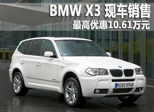 宝马X3这款紧凑型SUV凭借优秀的操控性和舒适性取得了好成绩,已成功地跻身于国际汽车市场的领先车型之列,成为很多国家最受欢迎的全轮驱动汽车之一。近期,编辑从北京燕宝4S店处了解到,宝马X3现车充足,最高现金优惠10.61万元。详情请见下表: