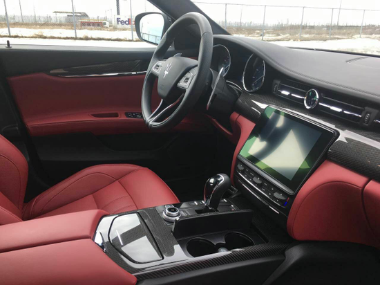 内饰方面:玛莎拉蒂总裁设计风格遵循了玛莎拉蒂总裁的指导性设计原则,曲线显然更加流畅柔美,但又不失 优雅的意式风格。仪表台、中控台和车门的优美造型及流畅线条完美匹配,营造出奢华的驾驶氛围。引人注目的拉丝铝材边框映衬着8.4英寸玛莎拉蒂触控屏:用户可以通过它方便地操作各种信息和娱乐系统。总裁科技感也是内饰给我们带来的全新感受。设计师们将新车采用的诸多科技产物骄傲的展现在了我们面前。中控台及仪表台各处的操作按键都显得很有质感,不光看上去不错,手感也很棒。