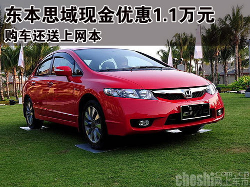 据东风本田销售人员介绍,目前思域优惠优惠有所提升,CIVIC EXi 1.8 MT舒适版可现金优惠1.1万元,购车还送上网本、车模等等,累计价值7300元,有意者可到店详谈,价格还有下探空间。
