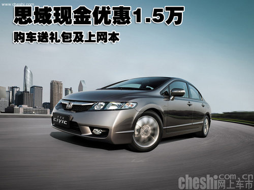 j据本田4S店销售人员介绍思域豪华型最低优惠1.5万 另外购车有厂家大礼包及上网本。思域在保持时尚流线造型的同时,全新风格的前脸使外形更加动感和硬朗。车身颜色在拉力红、塔夫绸白、雪花银基础上新增水晶紫、钛金银、彩晶黑三种颜色,能满足用户更多个性化的需求。内饰和操控方面,内饰新增炫酷黑颜色,品位非凡,内敛之中蕴藏无限激情与活力。新装备源于F1赛车的换档拨片以及全新三幅多功能方向盘尽显运动内涵,更能激发驾驭的乐趣。