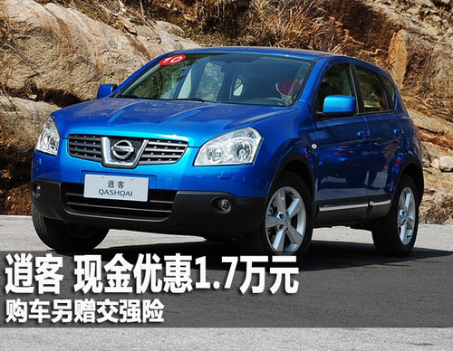东风日产2010款逍客于2009年10月28日正式上市,共推出5款车型,售价区间为16.78-21.98万元,新款主要是进行了增配及细节部分的优化,而并非是海外推出的改款车型。近期,编辑从东风日产北京经销商处了解到,逍客现金优惠1.7万元,购车另赠交强险。具体见下表: