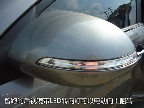 起亚智跑的后视镜带有LED转向灯可以电动向上翻转。采用了起亚汽车最新的设计语言,新车造型设计在起亚汽车位于美国加利福尼亚洲的研发中心完成。
