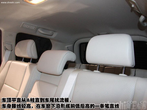 与强悍、力量的外形相比,内饰给人更多的是精致和尊贵。半苯胺高级真皮座椅辅以精致考究的实木内饰,触手可及的地方满是细腻和质感。仪表台上黑下白完全以真皮覆盖,中
