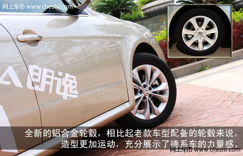 其次是全新的铝合金轮毂,相比起老款车型配备的轮毂来说,造型更加运动,充分展示了德系车的力量感。另外值得一提的就是新增的Storm Beige雅金车色,作为2011款朗逸的全新形象,上海大众海南信兴4S店刻意挑选了这款雅金色朗逸作为试驾车,从而它也顺理成章地成为了我们此次实拍的主角。