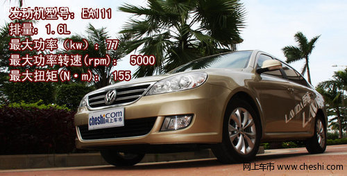 最后要说道说道朗逸的驾控表现,首先必须明确一点,朗逸并没有运动方面的优势,它的每一处细节的调试都偏向于舒适。就好像上海大众刻意要把朗逸打造成一个“居家好男人”似的。我们试驾的这款2011版1.6L手自一体品轩版朗逸搭载的是1.6发动机和大众很经典的MQ200型变速箱(这款变速箱大面积的出现在大众系列的车型中,是一款技术先进且成熟的变速箱),最大功率为77kw,最大扭矩为155N•m。在试驾的过程中,朗逸的每一次起步都是一种平缓顺畅的体验,千万不要奢望强大扭矩爆发带来什么推背感,要像女性不希望“居家好男人”脾气暴躁一样。不过这样的调教带来最直观的益处还有一点,那就是“安全第一”。