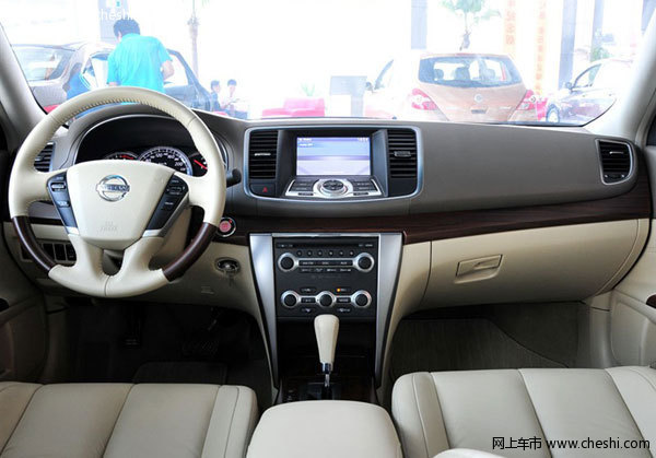 在内饰方面,新天籁的中控台像极了Infiniti类似的设计,错落分明,布局合理。连方向盘的造型和多功能按键,也是参考了Infiniti的设计元素。大尺寸液晶显示屏幕放置在正中间,集合了NAVI卫星导航、DVD及倒车影像功能。控制台做工精致,人性化的角度让你不需低头便可操作。三个圆形自发光仪表盘,简洁大方、清晰易读。
