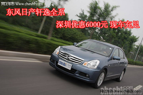 【网上车市】东风日产轩逸是一款拥有优雅外形和宽阔舒适空间的中级轿车。编辑从深圳东风日产经销商了解到,目前轩逸优惠有所缩紧,全系车型现金让利6000元。据销售人员介绍,目前店内的颜色和型号很全,并且有足够的现车供消费者选购,感兴趣的朋友不妨关注一下。详细可咨询:0755-33002601