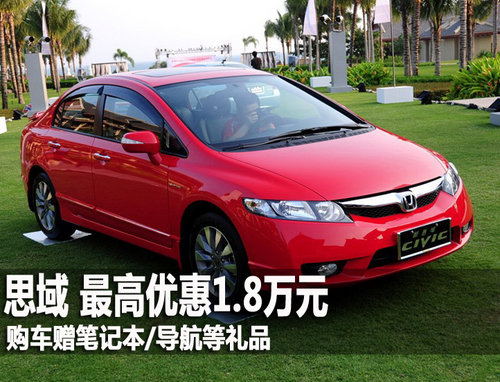 思域作为东风本田的主打轿车,凭借其时尚的外观设计和精细的内饰做工以及良好的燃油性,已经赢得了市场的普遍认可。近日,编者从东风本田北京经销商处了解到,思域最高现金优惠1.8万元,购车还可获赠笔记本和原厂车模等礼品。详情请见下表: