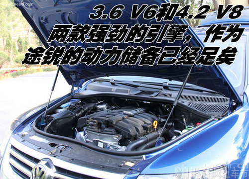 新一代途锐的车重相比于现行款轻了208 kg,而在其动力配备方面,大众的优势依然明显,选择范围很大,2011款的途锐将被提供FSI,TDI,TSI和一套混合动力系统,不过遗憾的是现有的V8汽油引擎,V10 TDI和疯狂的W12都将不再会搭载在新款途锐上。而新款途锐最引人注意的就是其混合动力系统,包括一台机械增压式V6 TSI,最大马力333 ps和一台电机,最大功率34 kw。两者组合可输出超过380 ps最大马力和580 Nm的峰值扭矩,搭载这套混合动力系统的途锐完成零到百公里加速仅需6.5秒,而百公里燃油消耗仅为8.2 L。