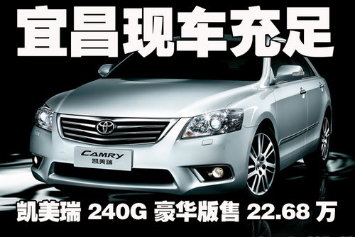 凯美瑞高贵的外形、舒适的内部空间、完美的驾乘体验,同级别车中最高的安全高科技配置和环保标准,可以说无愧于中高级车中佼佼者这一称号!近日,小编走访了宜昌地区广汽丰田4S店,了解到,店内凯美瑞240G豪华版有现车!售价22.68万元!暂无现金形式上的优惠!
