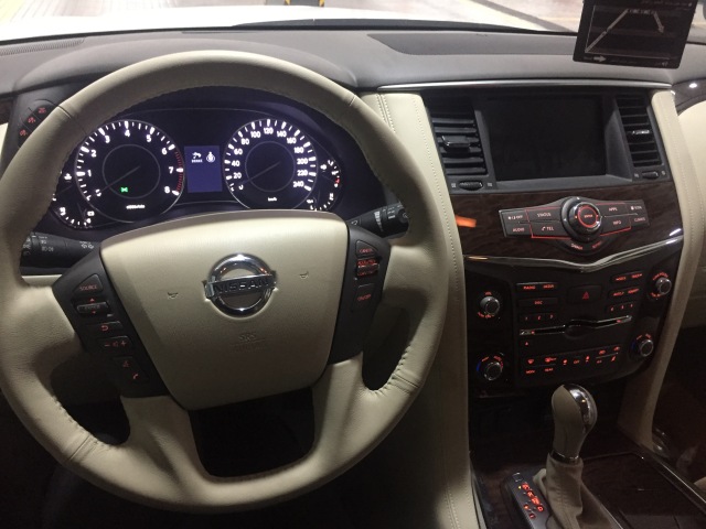 18款日产途乐全新途乐采纳了奢华轿车习用的四幅风向盘计划,手握感极佳。此外集成为了音响、空调节制及蓝牙车载免提体系,使驾驶者在行车中更加安全,做得手不离偏向盘。同时偏向盘加热功能,令驾驶者双手在严寒的冬天也能获得最佳的呵护。
