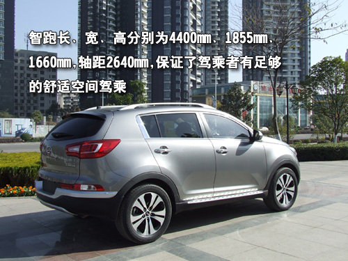 智跑长、宽、高分别为4400mm、1855mm、1660mm,轴距2640mm,保证了驾乘者有足够的舒适空间驾乘。