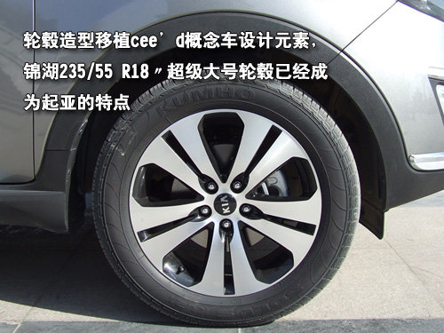轮毂造型移植cee’d概念车设计元素,锦湖235/55 R18〃超级大号轮毂已经成为起亚的特点。