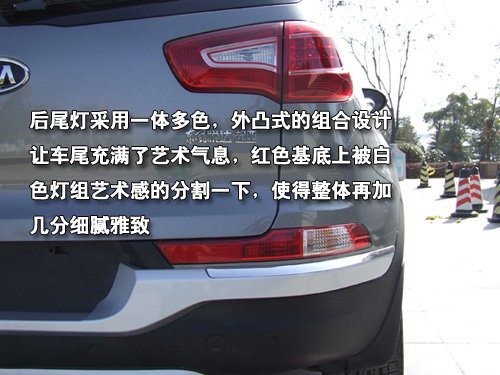 智跑车尾处标识保留海外名称Sportage,再加上一个红色R标识,代表revolution变革之意。 即使不是顶配车型,智跑在倒车时也拥有雷达和倒车影像的辅助,而倒车影像的画面将会出现在带有自动防炫目功能的内后视镜中,还带有辅助线,如此体贴的设计相信必能吸引更多消费者的眼球。