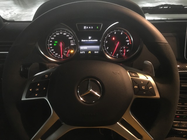 内饰方面:奔驰G500 4x4走进车内让人不禁忘记这是一辆外表强悍的SUV。奔驰G500多功能的方向盘设计、全新的中控台造型,以及带有320公里/小时记速器的仪表盘等等。另外,新的中控台还配备了一个新的齿轮旋钮和COMAND控制器。