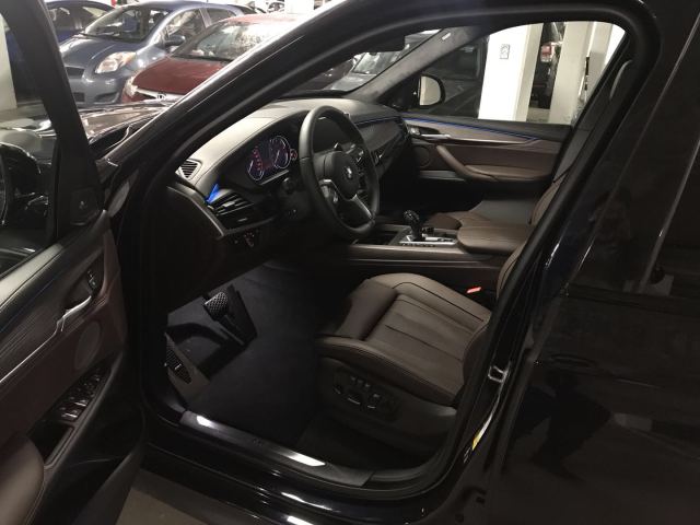 18款宝马X5 黑色 摩卡内饰 1?? 大豪华包:氛围灯、哈曼卡顿音响、四区空调、无钥匙进入、抬头显示、后排座椅加热、门把手灯、后排手动遮阳帘、电吸门、环影、并道、防碰撞预警?;は低?。