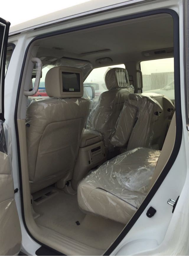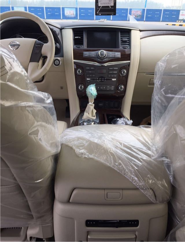 18款日产途乐Y62中东版4.0 SE配置:白外/米内,6气囊,豪华包(BOSE音响 真皮座椅 后娱)三排座椅电动 可视后视镜(带影像),磨砂镀铬 遥启、智能卡、8寸大屏、天窗、防滑差速器、后差速锁、倒影、主驾电动座椅(带腰部支撑)、7速、7座、140L油箱 、18轮、电动后视镜、LED日间行车灯、LED尾灯、大灯清洗、雾灯、多功能真皮方向盘、蓝牙、自动空调、一键启动、定速巡航、双向开启冰箱、桃木内饰、前后电眼(带倒影)、电动尾门、珍珠漆、脚踏、全时四驱、多地形模式、陡坡缓降、13个扬声器、自动空调(后排可调节)、暖风、拖钩。