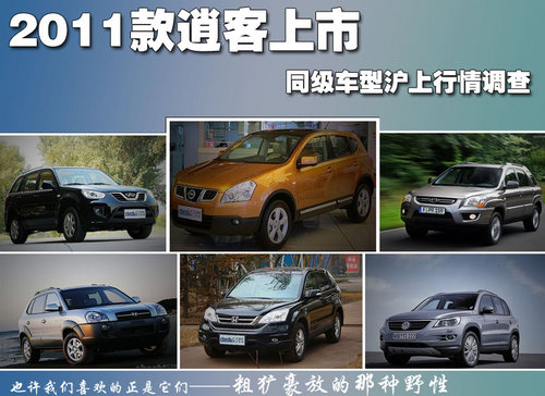 我深信各位在购车之前一定会进行一系列车型的比较,最后决定什么样的车型适合自己。我比较趋于那种设计前卫、造型新颖的四轮驱动越野车。我选择逍客及同级车型来对比是因为他们不但是SUV的典型代表,更是因为他们颇具越野车粗犷豪放的野性。不但能给我们运动感,而且能给我们最重要的安全感。诸如逍客,狮跑,途胜,途观,CR-V等车型车内空间较大,载人载物游刃有余。每个消费者所站角度不同,那么考虑的问题也就不尽相同了。通过对各车型在沪行情的调查比较,看看哪款SUV更适合你。