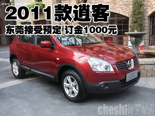 据日产汽车销售人员表示,目前在东莞地区购买上表2011款逍客车型需交付订金1000元,销售人员还表示,该款车型货源比较紧张,全系均需预定,现在订车有望在年前提车,有兴趣的朋友不妨咨询相关经销商。