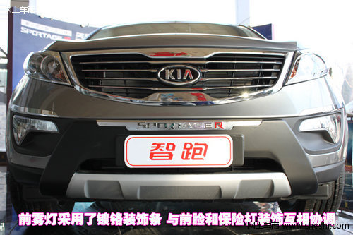 东风悦达起亚智跑在前脸的设计上依然应用了全新起亚家族脸谱,与兄弟索兰托极其相似,大面积的镀铬进气格栅显得更为霸气。前雾灯采用了镀铬装饰条,与前脸和保险杠装饰互相协调。东风悦达起亚智跑与现代IX35同属一个级别的车型,智跑车身尺寸为4440mmx1855mmx1690mm,在同级别车型中绝对称得上是大个子。