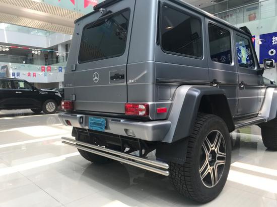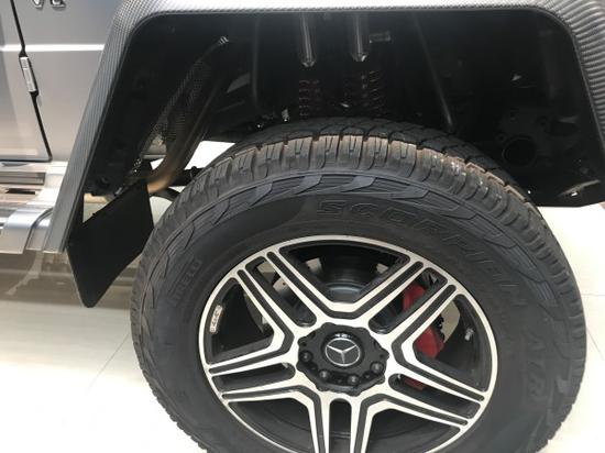 【网上车市 天津滨海行情.厂商稿】2018款奔驰G550 4X4磨砂灰配置:离地距离 450mm、涉水能力 1米、轮胎间距 1.744mm、3种驱动模式、22寸轮毂、每个轮胎带有两个减震器及两个悬架弹簧 单天窗、22轮、红卡钳、双减震、氙灯LED日行灯、多轮廓电动包裹座椅、翻毛皮内饰(翻毛皮双色座椅、翻毛皮方向盘、翻毛皮门板、翻毛皮内顶)、前排座椅通风加热、二排座椅加热、哈曼音响(14个扬声器)、三把差速锁、中控碳纤维装饰、底盘舒适度调节、脚踏、前电眼、倒影、导航、多功能方向盘(蓝牙、定速巡航、换挡拨片)