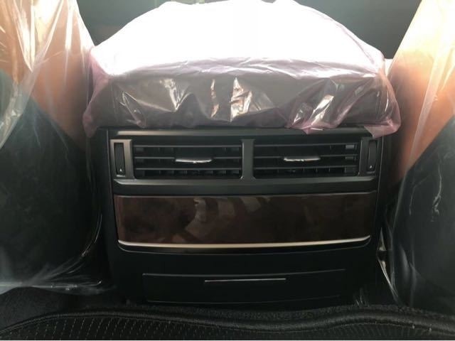 后排座椅同样采用半苯胺皮革包裹,座椅的设计较为平坦,不过却宽大舒适,并且支持电动调节前后。后排中央扶手填充厚实,手感也极为舒适,后排分区独立空调控制按键位于扶手前端,也便于操作。后方的盖板打开后可看到多媒体??仄?,可对前排座椅后方的11.6英寸显示屏进行控制,营造出一个豪华舒适的空间。